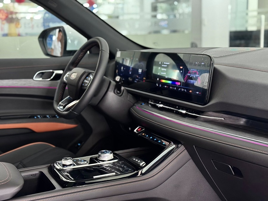 Các chi tiết như núm xoay chuyển số, phanh điện tử, phím xoay điều khiển các chức năng cao cấp.
