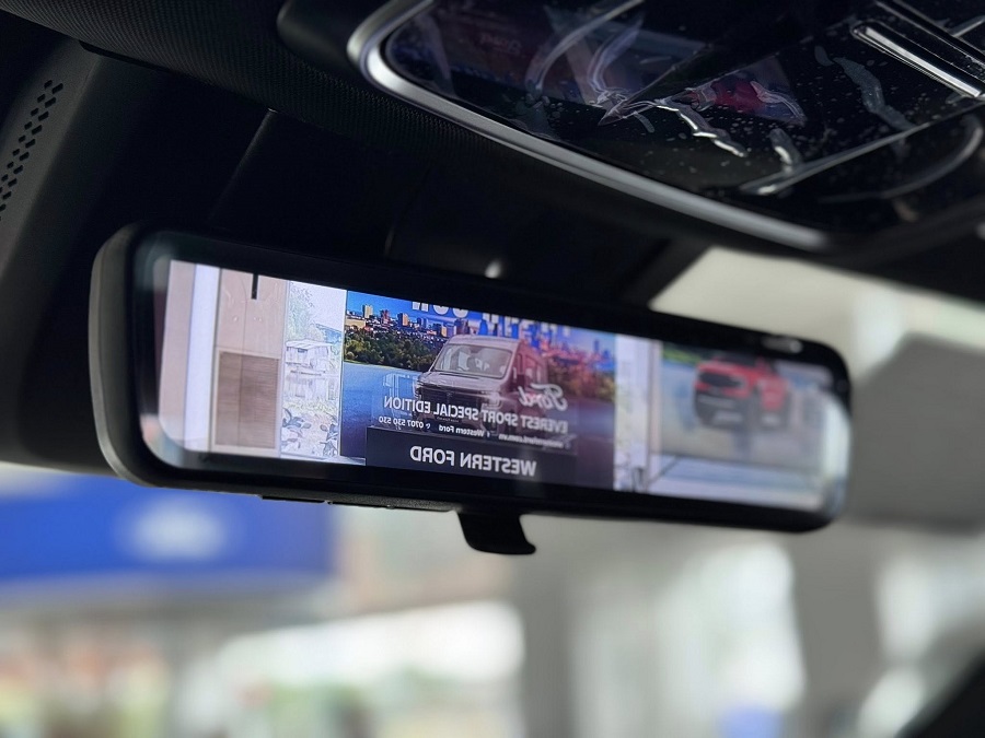 Gương chiếu hậu trong xe điện tử.Gương chiếu hậu tích hợp camera giúp người lái dễ dàng quan sát vật cản phía