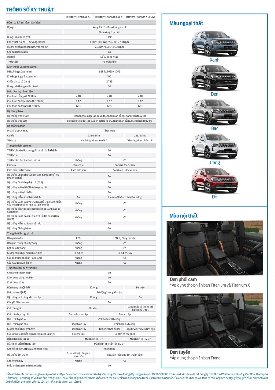 Bảng giá Ford Territory với giá niêm yết như sau: